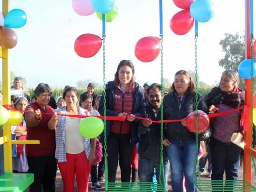 | El paradero incluye dos columpios, una banca y una lámina con el nombre de la diputada de Morena, Simey Olvera Bautista, quien fue la encargada de cortar el listón y poner globos para inaugurarlo | ||||||