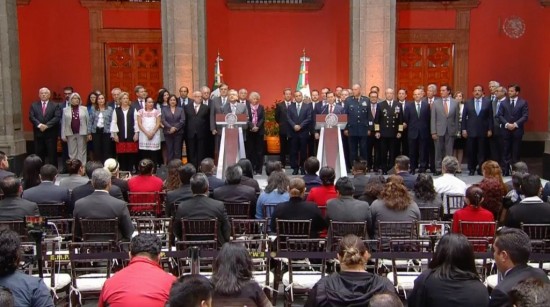 Hoy se da este paso inédito y celebro que estemos llevando a cabo esta transición institucional, dijo poor su parte Andrés Manuel López Obrador, quien además resaltó que se está dando con el apoyo del gabinete actual.
