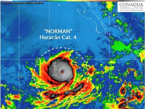 Ciudad de México.- El Servicio Meteorológico Nacional (SMN) informó que el huracán Norman se intensificó rápidamente a categoría 4 en la escala Saffir-Simpson, por su lejanía no afecta a las costas de México.