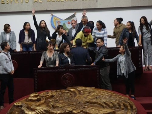 La sesión transcurrió de manera accidentada, luego que los diputados del Partido Revolucionario Institucional (PRI) María Luisa Pérez, Adela Pérez, Julio Valera y Mayka Ortega, tomaron la Tribuna del Congreso en un intento de evitar que se realizará la votación del segundo acuerdo, en vez del que se tomó el 4 de septiembre, cuando el PRI ocuparía el primer año de la presidencia, Partido Acción Nacional (PAN) el segundo y Morena el tercero. En la tribuna las diputadas de Morena, Corina Martínez y del PRI, Adela Pérez, se manotearon luego que la segunda trató de arrebatar el micrófono a Veras Godoy y la primera defendió a este. Posteriormente, en votación económica Veras Godoy tomó en cuenta los votos de los 17 diputados de Morena -de un total de 30 legisladores-, con lo cual -dijo- es válido el acuerdo que se leyó la víspera, cuando la sesión tuvo que declararse en receso tras la irrupción de priistas al recinto. Con esto, el presidente de la mesa directiva dio por terminados los trabajos y citó a la sesión plenaria para este jueves a las 10:00 horas. Al salir del recinto, Veras Godoy afirmó que les guste o no a los priistas “soy el presidente de la Junta de Gobierno”. Dijo que en un plazo de ocho días reclamara las oficinas de la junta de gobierno. En conferencia de prensa, la bancada tricolor desconoció este acuerdo, pues dijo que lo valido fue lo ocurrido el 4 de septiembre, cuando seis de siete diputados votaron por la primera propuesta. Pérez Perusquia descartó que vaya a desocupar la presidencia de la Junta de Gobierno y aseguró que el acuerdo que Morena dice tener “pues no lo conocemos” carece de validez. |