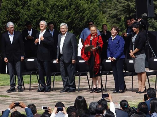 En el lugar, al que asistieron legisladores federales y locales, colocaron tres coronas de rosas blancas con la leyenda: “Gobierno de la República, cuarta transformación”, en los monumentos ecuestres de Ignacio Allende, Miguel Hidalgo y Mariano Jiménez, que se localizan en el Monte de las Cruces de este municipio. López Obrador y Alfredo del Mazo, acompañados por la senadora Delfina Gómez y la esposa del presidente electo, Beatriz Gutiérrez, montaron la guardia de honor mientras la Banda de Guerra hacía sonar el Tres de Diana. Luego del evento donde no hubo discursos, López Obrador indicó que no dijo algunas palabras porque será respetuoso hasta el final de la gestión del presidente Enrique Peña Nieto y hasta que le entreguen la Banda Presidencial. Afirmó que el Monte de las Cruces es un lugar importante por el triunfo de Miguel Hidalgo, el 30 de octubre de 1810, y tomó la decisión histórica de no tomar la Ciudad de México, para evitar la muerte de mexicanos. A su vez, Beatriz Gutiérrez Müller, esposa de López Obrador, recordó las palabras del poeta Carlos Pellicer en un discurso que dio en Huixquilucan el 16 de septiembre de 1930, en el que se refirió a la importancia de la libertad y dijo que los malos gobiernos precipitan a los pueblos a la esclavitud. En tanto, la senadora de Morena y excandidata al gobierno del Estado de México, Delfina Gómez, señaló que este acto tiene como prioridad reflexionar lo que en 1810 hicieron muchos mexicanos, y determinar lo que se puede hacer para mejorar las condiciones de la población. En ese sentido convocó a los alcaldes y diputados a hacer su trabajo para ayudar a la transformación del país y la sociedad, "desde su trinchera deben apoyar en este esfuerzo". Por su parte, la presidenta municipal de Ocoyoacac, Diana Pérez, recordó que un día como hoy dio inicio la Independencia de México, y llamó a trabajar para hacer un mejor país. |
