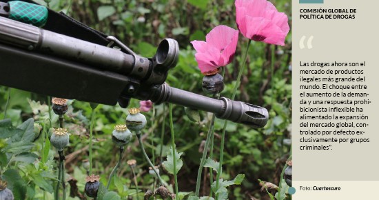 | Un nuevo informe de la Comisión Global de Política de Drogas plantea que los gobiernos deben encaminarse a la regularización de las drogas como una estrategia efectiva para desempoderar a los grupos del crimen organizado que se ven beneficiados por el control de los estupefacientes. | ||||||