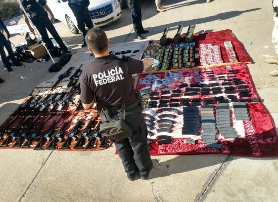Durante la revisión aleatoria en la zona fronteriza de Sonora, los agentes de la división de seguridad regional se encontraban en la Garita Puerta México- Dennis DeConcini. Ahí, observaron a un conductor nervioso por lo que se acercaron a la persona que se identificó como Alfonso “N” y accedió de manera voluntaria a una revisión de su vehículo. Dentro del área de carga de la camioneta, los policías localizaron cajas ocultas entre colchonetas; al revisarlas encontraron 24 armas largas, más de 6 mil cartuchos de diferentes calibres, 114 cargadores de diferentes capacidades. Aditamentos como empuñaduras, mecanismos de disparo, rieles para armas de alto poder, y kits para el arme y desarme de armas de fuego, “lo anterior sin los permisos correspondientes de su legal procedencia”. “Los elementos de la Policía Federal leyeron al detenido la Cartilla de Derechos que Asisten a las Personas en Detención, y fue puesto a disposición del Ministerio Público correspondiente junto con el arsenal asegurado, a fin de continuar con las investigaciones pertinentes”, informó la dependencia. |