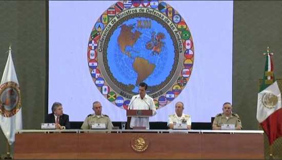 | Al clausurar los trabajos de la XIII reunión de las 34 naciones que integran la CNDA, el mandatario mexicano afirmó que las fuerzas armadas deben estar preparadas “para combatir eficazmente el terrorismo, la delincuencia organizada trasnacional y el narcotráfico, lo mismo que el tráfico ilegal de armas y el lavado de dinero, que son el combustible de la violencia criminal. | ||||||