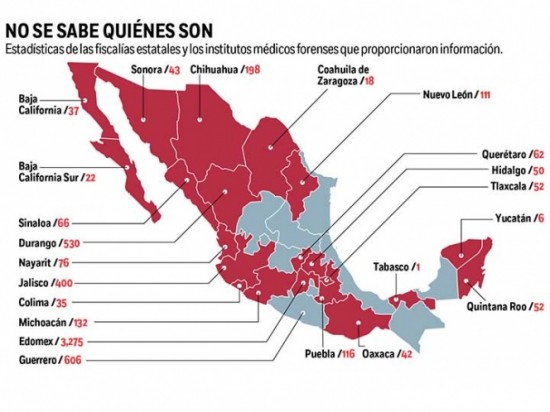 | Hay cinco mil 930 cuerpos sin identificar; datos de fiscalías y semefos. | ||||||