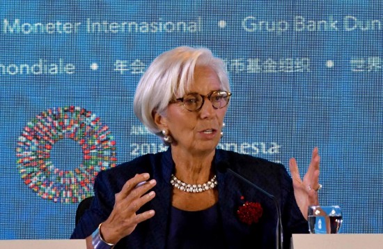 | Durante el lanzamiento formal de las reuniones anuales del FMI y del Banco Mundial en la isla turística indonesia de Bali, Lagarde instó a los países a "reducir la escalada" de los conflictos y reparar las reglas comerciales globales en lugar de abandonarlas. | ||||||