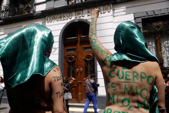 Las inconformes realizaron una parada en el Congreso de Puebla, donde exigieron una reforma al Código Penal para legalizar el aborto en la entidad.