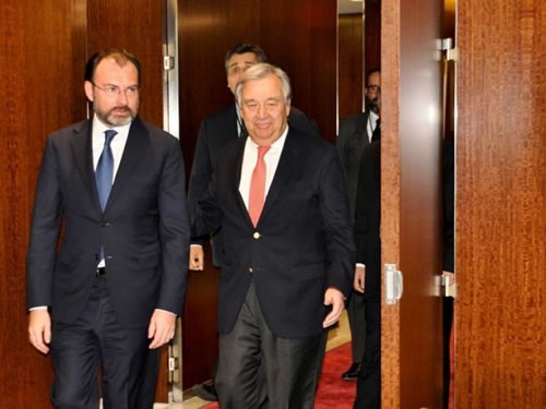 Ciudad de México.- El titular de la Secretaría de Relaciones Exteriores (SRE), Luis Videgaray Caso, inició este jueves una gira de trabajo en Nueva York, donde tendrá diversos encuentros con representantes de la Organización de las Naciones Unidas (ONU), entre ellos el secretario general, Antonio Guterres.