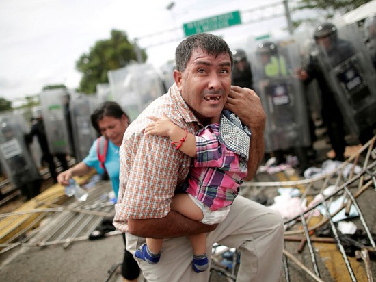 Fuentes de la Dirección General de Migración (DGM) de Guatemala, citadas por emisoras capitalinas, informaron que cientos de hondureños se negaron a documentarse y desde la aduana guatemalteca empujaron una puerta hasta derribarla. Cientos de personas que integran la llamada Caravana Migrante esperaban desde anoche en la aduana de Tecún Umán, en el occidental departamento guatemalteco de San Marcos (a 260 kilómetros de la capital). En medio de un tumulto, los migrantes hondureños derribaron la puerta y cruzaron el puente sobre el Río Suchiate, limítrofe entre los dos países, e ingresaron a territorio mexicano. La acción se produjo pese a que el gobierno de México, por razones humanitarias, autorizó el ingreso de los migrantes una vez que se documentaran en la aduana. El cónsul titular mexicano en Quetzaltenango, Raúl Cueto Martínez, citado por la estación Emisoras Unidas de Guatemala, aclaró que el Instituto Nacional de Migración (INM) no está solicitando pasaporte ni visa a los hondureños. Una vez que presentan un documento de identidad oficial, se les permite el ingreso al territorio mexicano, destacó el diplomático, quien dijo que la prioridad es el respeto a los derechos humanos de los migrantes. Explicó que con este registro se pretende un ingreso ordenado y controlado al país, pero sobre todo proteger a los hondureños, especialmente a mujeres y niños que integran la caravana. Miembros de la caravana entrevistados por la estación de radio guatemalteca reconocieron la disposición humanitaria del gobierno mexicano e indicaron que esperarían su turno para documentarse e ingresar al país. Las fuerzas de seguridad guatemaltecas no intervinieron durante el tumulto y se mantuvieron al margen para "evitar incidentes de violencia", indicó un jefe de la policía en Tecún Umán. Mientras que autoridades de la DGM indicaron que la mañana de este viernes expulsaron a su país al exdiputado hondureño Bartolo Fuentes, detenido el martes pasado en Guatemala y quien es uno de los presuntos líderes de la Caravana Migrante. MIGRANTES AGREDEN A POLICÍA FEDERAL Cientos de hondureños, salvadoreños y guatemaltecos, que conforman la Caravana Migrante, al ingresar a México por la frontera Tecún Umán, se enfrentaron y agredieron a elementos de la Policía Federal, que intentaban poner orden. Los disturbios se registraron luego de que por varios minutos los migrantes pasaron a las mujeres y niños por arriba de la cerca que divide la frontera de México y Guatemala. Posteriormente, decidieron romper la valla por lo que elementos de la Policía Federal intentaron contener a los migrantes que salieron de honduras y a los que se han sumado miles más que quieren salir de sus países de origen en busca de alcanzar el sueño americano y así tener una mejor vida. POLICÍA FEDERAL RECUPERA EL ORDEN EN FRONTERA SUR El comisionado nacional de la Policía Federal, Manelich Castilla Craviotto, afirmó que recuperó el orden y la paz en el puente fronterizo entre México y Guatemala, luego del caos que se vivió en ese punto por el arribo de la Caravana de Migrantes procedentes de Centroamérica. Era la prioridad recuperar la tranquilidad y el orden y se logró”, afirmó. Refirió que se logró organizar a los migrantes procedentes de Honduras y en los términos que resaltó el secretario de Gobernación para permitir una migración ordenada pacífica y legal. El funcionario explicó que luego de que personal de seguridad fue agredido por personas ajenas a la caravana de migrantes, se estableció comunicación con la gente que venía al frente de la misma y se acordó que el personal migratorio tomará el control del ingreso. En ese sentido abundó que ya entraron los últimos dos autobuses en lo que el personal de migración se trasladará a personas vulnerables, niños, mujeres y personas de la tercera edad, para que sean atendidos en términos médicos y valorar su estado de salud. La prioridad es salvaguardar los derechos humanos de los migrantes, por lo que se les planteó ingresar a los sectores más vulnerables para que sean atendidos y garantizar su buen estado de salud”, expresó Castilla Craviotto. Ante esa situación en la frontera sur del país, afirmó que hay suficientes elementos de la Policía Federal para contener este tipo de circunstancias y seguir garantizando que la migración sea legal y ordenada. “Tenemos una policía fuerte y el personal es suficiente”. |