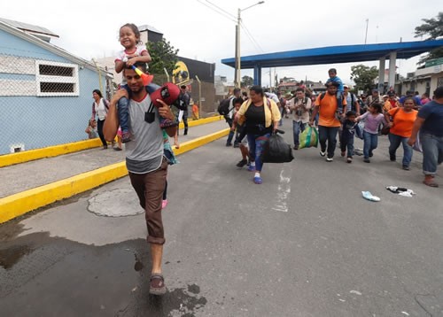 "Nos hemos enterado del fallecimiento de un hondureño en el km 30 de la carretera al Pacífico", al sur de Guatemala, dijo en rueda el mandatario Morales junto a su par de Honduras, Juan Orlando Hernández. Morales explicó que un guatemalteco solidario subió en la parte trasera de un pick up a un grupo de hondureños, pero lamentablemente uno de ellos cayó y falleció al instante. Los gobernantes se reunieron en las instalaciones de la Fuerza Aérea Guatemalteca de la capital para analizar la crisis que provocó esta avalancha migratoria, la cual tildan de política los dos líderes. La masiva caravana salió el sábado pasado de San Pedro Sula, al norte de Honduras, pero se topó con un cerco de policías antimotines mexicanos que le impidió, a la gran mayoría, ingresar a suelo mexicano durante un enfrentamiento en el cual lanzaron gases lacrimógenos. El éxodo ha sido fuertemente criticado por el presidente estadounidense, Donald Trump, quien ha amenazado a Guatemala, Honduras y El Salvador con quitarles la ayuda financiera si no contienen la migración ilegal. Morales aprovechó el deceso para ejemplificar los riesgos que se corren con la migración ilegal. |