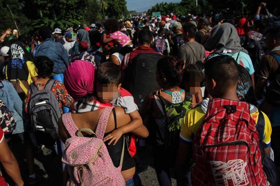 En la explanada que se ubica a un costado de la iglesia, los migrantes se ubicaron a la sombra del llamado Domo Municipal para huir del Sol abrazador. Los miles de viajeros, entre los cuales la mayoría son hondureños, aunque también hay guatemaltecos y nicaragüenses, esperan arribar en horas de la tarde a Tapachula donde ya está dispuesto un albergue que pueda dar refugio a todos los migrantes. Aunque la vanguardia de la marcha está compuesta sobre todo por hombres jóvenes, en el grueso se encuentran también cientos de mujeres y niños, algunos de ellos "de brazos". Llama la atención que en el camino hay muchas personas que regalan agua a los caminantes con la intención de hacerles más llevadero el camino, pues hasta las 11:00 horas la temperatura superaba ya los 30 grados centígrados, con el Sol a plomo, pues cielo se encuentra despejado. Los propios hondureños, sobre todo los hombres autocontrolan a su grupo para que el agua que ofrece la gente en el camino se destine de manera prioritaria a los niños y para que no haya desmanes a lo largo de la ruta. A la salida de esta población se encuentra dispuesto un amplio operativo de la Policía Federal acompañado por numerosos autobuses de pasajeros que probablemente se utilicen para conducir a los migrantes hasta Tapachula. Durante la mañana, circularon en redes sociales mensajes en Tapachula para pedir a la población que tome precauciones y que formen un bloque cerrado con el reclamo de que en ocasiones anteriores cuando se dieron desastres naturales que afectaron a los chiapanecos, las autoridades no hicieron nada y en cambio ahora pretenden dar la bienvenida a los extranjeros. Se espera que las autoridades alojen a la caravana en un lugar conocido como Expo Mesoamericana, centro de exposiciones con capacidad para alojar hasta a 12 mil personas entre expositores y visitantes. En ese sitio, se encuentra personal de la Secretaría de Marina-Armada de México (Semar) y del municipio dispuesto para atender a los migrantes. |