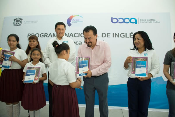 .- En el municipio de Boca del Río se realizó la entrega de paquetes escolares para niños de nivel primaria a través del Programa Nacional de Inglés, el evento se llevó a cabo en la biblioteca digital; en representación del alcalde de Boca del Río Humberto Alonso Morelli, estuvo Daniel Velasco González, director de Participación Ciudadana; Jorge Flores Lara, Subsecretario de Educación Básica; Verónica Blanco, subdirectora de Educación; Verónica Ramos, Enlace del Programa Nacional de Inglés; Smirna Castro García, Regidora Sexta del Ayuntamiento de Boca del Río en la comisión de Educación y la maestra María del Carmen González Paredes, subdirectora de la escuela primaria José Vasconcelos.