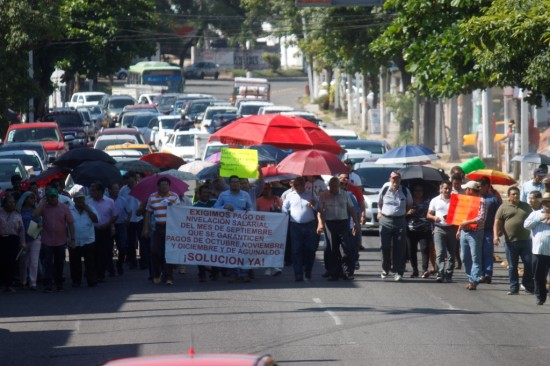 | Los inconformes se apostaron en las instalaciones de la Secretaría de Finanzas y luego bloquearon la avenida Paseo Tabasco y 27 de febrero, dos vías principales de Villahermosa, para exigir el pago correspondiente y que las autoridades les garanticen la gratificación de los meses de octubre, noviembre, diciembre, y el aguinaldo. |