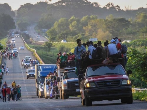 Las personas, que fueron interceptadas al filo del mediodía de ayer, habían ingresado ilegalmente a México, por lo que los elementos del INM los subieron a cinco autobuses y al parecer fueron trasladados a la estación migratoria Siglo XXI en la ciudad de Tapachula y luego fueron deportados. Se espera que en el transcurso del fin de semana llegue a Tecún Umán, Guatemala, otra caravana provenienente de Honduras, con el fin de llegar hasta Estados Unidos. LOS NIÑOS, LOS MÁS PERSISTENTES A los niños de la caravana hondureña ni el sol, el calor ni la lluvia los desanima. Caminan al mismo ritmo que sus padres, abordan vehículos y comen lo que les regalan. Neftalí uno de los niños migrantes que van en la caravana en compañía de su madre y hermanos, sueña con ser militar para combatir la delincuencia. Nos venimos con mi mamá porque me querían meter a las maras (...) mi mamá por eso dijo ‘de una vez que está la caravana, vámonos’ y nos vinimos”. Jerson, es otro niño que camina junto a su madre y sus hermanos menores. Sueña con ser abogado y camarógrafo, estudiaba el sexto año de primaria y, a pesar de las condiciones climáticas, no se ha cansado en su caminar. CARAVANA, YA EN ARRIAGA El recorrido de más de 100 kilómetros, desde Pijijiapan hasta el municipio de Arriaga, Chiapas, (la guarida de La Bestia) comenzó a las 3 de la mañana. Al llegar, una pipa de agua estacionada junto a las vías del ferrocarril fue, literalmente, un oasis para los visitantes quienes aprovecharon para lavar su ropa y darse un buen baño. Después vino el festín: 150 kilogramos de carnitas donadas por voluntarios y el ayuntamiento. -Ernesto Méndez AQUÍ EL REPORTAJE COMPLETO: