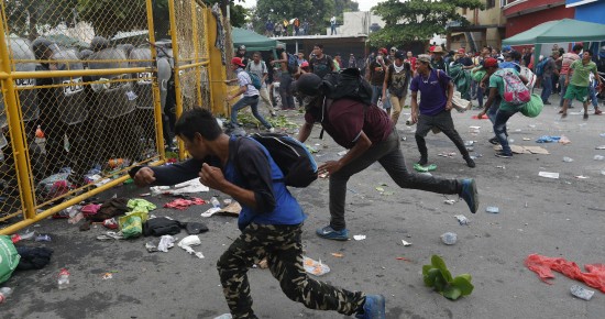Decenas de migrantes hondureños derribaron este domingo la valla metálica que divide a Guatemala y México y cruzaron al vecino país. Del lado guatemalteco también hubo enfrentamientos con policías, que utilizaron gases lacrimógenos y los migrantes respondieron con piedras y palos con la finalidad de cruzar la frontera. Al menos un migrante hondureño murió hoy y otros diez resultaron heridos durante un enfrentamiento con policías federales mexicanos tras cruzar la frontera con Guatemala, para llegar hasta Estados Unidos en búsqueda de mejor calidad de vida, informaron los bomberos voluntarios de Guatemala. El hondureño recibió el impacto de una bala de goma y falleció cuando era trasladado por bomberos guatemaltecos hacia un centro asistencial en el municipio de Ayutla, en el departamento de San Marcos, Guatemala. Hasta ahora la víctima, quien recibió el golpe en la cabeza, no ha sido identificada por las autoridades. Decenas de migrantes hondureños derribaron este domingo la valla metálica que divide a Guatemala y México y cruzaron al vecino país. Del lado guatemalteco también hubo enfrentamientos con policías, que utilizaron gases lacrimógenos y los migrantes respondieron con piedras y palos con la finalidad de cruzar la frontera. “Vamos para México”, gritaban los migrantes de esta nueva caravana. Finalmente los migrantes lograron pasar el cerco y comenzaron a avanzar por el puente hacia México. Previo al enfrentamiento, los migrantes solicitaron un diálogo con las autoridades guatemaltecas para que se les permitiera el paso y llegar a la frontera con México para negociar también su entrada. Dijeron que lo que ellos quería no es asilo político sino permiso de tránsito. Durante el enfrentamiento, se vivieron momentos de mucha tensión, los niños lloraban mientras las madres los agarraban de la mano y los arrastraban para continuar el paso y salir de la línea de fuego Una primera caravana de migrantes, ahora formada por unos 7 mil personas, partió el 13 de octubre de San Pedro Sula, Honduras, con dirección a Estados Unidos y gran parte de ella marcha actualmente por México, tras pasar por Guatemala. Mientras, esta segunda caravana, de unas mil 500 personas, está atravesando Guatemala dispersa en varios grupos que también tiene a Estados Unidos como destino final. El Presidente de Estados Unidos, Donald Trump, ha adoptado una postura muy dura, amenazando con enviar el Ejército a la frontera, y ha asegurado que recortará “sustancialmente” la ayuda económica que concede a Guatemala, Honduras y El Salvador como represalia por el avance de los migrantes, al tiempo que ha arremetido contra México por no detenerla. PRIMERA CARAVANA PERMANECE EN OAXACA La multitudinaria caravana de migrantes centroamericanos detuvo hoy su avance en México tras una riña que dejó un migrante herido, en una jornada muy crítica en la frontera con Guatemala luego de que centenares de migrantes rompieran el cerco de seguridad. La caravana migrante de centroamericanossuspendió este domingo su salida desde San Pedro Tapanatepec, en el estado de Oaxaca, para reorganizar sus mecanismos de seguridad después de que anoche una trifulca dejara a un migrante herido y generara preocupación entre las más de 7 mil personas que conforman el contingente. Uno de los voceros de la caravana, Alexander Martínez, informó en una rueda de prensa que el grueso de la caravana decidió mantenerse en esta localidad y reanudar mañana su caminata a las tres de la madrugada rumbo a Santiago Niltepec, a unos 50 kilómetros, mientras organizan comisiones de seguridad. “Fue una provocación, fue mandado a hacer para hacernos quedar mal ante el mundo y ante México y por eso decidimos no salir para hacer un comité de seguridad y que todo sea ordenado y el que ande queriendo hacer pleito será entregado a las autoridades. Todo quedó controlado y no pasó a más”, dijo. |