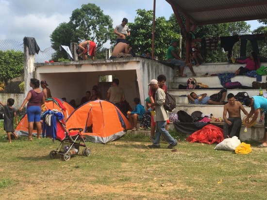 .- Alrededor de las 9:00 de la mañana de este viernes arribó el primer contingente de aproximadamente 300 migrantes de la caravana migrante al poblado de Donají que se localiza entre los limites de los estados de Oaxaca y Veracruz, y se instalaron en el campo deportivo Donají.