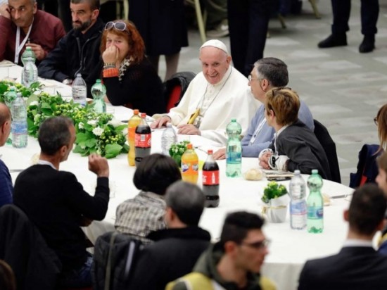 El pontífice argentino aseguró que la atención a los pobres no puede ser "la moda de un pontificado", pero en estos cinco años Francisco se ha volcado en atender a los más desfavorecidos. El año pasado Francisco instituyó la Jornada Mundial de los Pobres para la Iglesia católica y en su segunda edición, el Papa celebró de nuevo una misa en la basílica de San Pedro, donde en las primeras filas se sentaron 6 mil sintecho, indigentes e inmigrantes. En su homilía, Francisco afirmó que el grito de los pobres es "cada día más fuerte, pero sofocado por el estruendo de unos pocos ricos, que son cada vez menos pero más ricos". Sacudió las conciencias al recordar la imagen de "los pocos epulones que banquetean con lo que en justicia corresponde a todos". La injusticia es la raíz perversa de la pobreza", dijo Francisco. Pero además hizo referencia al aborto al pedir escuchar "el grito ahogado de los niños que no pueden venir a la luz" y a las guerras y "a los chicos acostumbrados al estruendo de las bombas en lugar del alegre alboroto de los juegos". El pontífice recordó "el grito de los ancianos descartados y abandonados" y el de los inmigrantes, "quienes deben huir, dejando la casa y la tierra sin la certeza de un lugar de llegada" o "de poblaciones enteras, privadas también de los enormes recursos naturales de que disponen". A los fieles les dijo que es Dios quien pide que "lo reconozcamos en el que tiene hambre y sed, en el extranjero y despojado de su dignidad, en el enfermo y el encarcelado". E insistió en que "el cristiano no puede estar con los brazos cruzados, indiferente, fatalista" ante el sufrimiento del prójimo. Miremos lo que sucede en cada una de nuestras jornadas: entre tantas cosas, ¿hacemos algo gratuito, alguna cosa para los que no tienen cómo corresponder?", interrogó Francisco durante su homilía. El pontífice argentino concluyó pidiendo al Señor que enseñe a "dejar lo que pasa, a alentar al que tenemos a nuestro lado, a dar gratuitamente a quien está necesitado". Porque para Francisco, la ayuda al prójimo "no es una opción sociológica, no es la moda de un pontificado, es una exigencia teológica. Es reconocerse mendigos de salvación, hermanos y hermanas de todos, pero especialmente de los pobres, los preferidos del Señor". Despiértanos, Señor, de la calma ociosa, de la tranquila quietud de nuestros puertos seguros. Desátanos de los amarres de la autorreferencialidad que lastran la vida, libéranos de la búsqueda de nuestros éxitos. Enséñanos a saber dejar, para orientar nuestra vida en la misma dirección de la tuya: hacia Dios y hacia el prójimo", exhortó. Posteriormente, desde la ventana del palacio apostólico, Francisco recordó su almuerzo con mil 500 indigentes y que estas comidas con los más necesitados se repetirán hoy en muchas parroquias y asociaciones de todo el mundo. Deseó que estas iniciativas "sean una señal de esperanza y un estímulo para convertirse en instrumentos de misericordia en el tejido social". Y esta iniciativa convirtió la enorme sala de las audiencias papales diseñada por el arquitecto italiano Pier Luigi Nervi en un inusual comedor social, con mesas circulares, alrededor de una central oval donde se sentó el pontífice. Francisco entró en el aula y agradeció a quienes donaron el almuerzo y a los 70 voluntarios que lo sirvieron y después se sentó en la mesa con 18 mujeres y hombres elegidos entre los desfavorecidos de la capital italiana. El menú fue ofrecido por el hotel Rome Cavalieri-Hilton Italia y la asociación Ente Morale Tabor y consistía en lasaña, pollo con puré de patatas y tiramisù, y se entregó una bolsa con paquetes de pasta a quienes participaron en el almuerzo. Mientras, en la plaza de San Pedro, en otra de las iniciativas del Papa, sigue instalado el ambulatorio temporal que en esta semana ha atendido a cientos de personas vulnerables y sin recursos. |