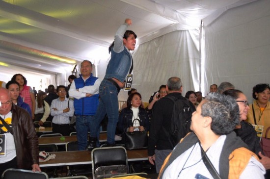 La decisión se tomó en medio de un ambiente de crispación y connatos de enfrentamientos, en los cuales se aventaron sillas y botellas de agua contra la mesa directiva del Congreso por parte del bloque disidente. Incluso hubo quien prendió fuego a una camiseta para mostrar su inconformidad. El tema que polariza a los congresistas es la creación de la dirigencia provisional, la cual se propone que esté integrada por cinco personas. Los disidentes argumentan que la toma de decisiones del PRD no puede quedar concentrada en unas cuantas manos. Los jefes de corrientes han mantenido negociaciones con el fin de llegar a un acuerdo. Mientras tanto, se declaró un receso a la espera de que se logre un pacto. Al retornar a la sesión, los congresistas discutirán 5 temas reservados, entre ellos el de la dirigencia provisional. |