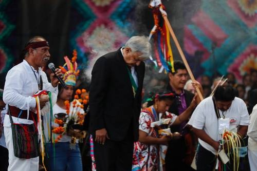Y enseguida pidió con humildad le tengan confianza: “No me dejen solo porque sin ustedes no valgo nada… o casi nada”. Uno a uno expuso un ambicioso programa de cien puntos que comprenden prácticamente las áreas económicas, sociales y de seguridad en el país. Destacó el anuncio del inicio, anoche mismo, de un proceso de amnistía para liberar a presos políticos o víctimas de represalias de caciques, funcionarios o gobernantes del antiguo régimen autoritario, y se cancelarán acusaciones penales contra activistas y luchadores sociales”. La Secretaría de Gobernación tiene a su cargo hacer realidad esta acción. Durante 92 minutos y ante una Plaza de la Constitución colmada por familias, grupos organizados para la ocasión y procedentes de provincia, ufanos militantes de Morena y muchos más que llegaron por su cuenta –y que esta vez no tuvieron que pasar por la revisión a manos de policías o militares– López Obrador los conmovió en numerosos momentos y en otros más sus anuncios fueron aclamados. Esto fue así, sobre todo cuando casi hacia el final les reiteró que él ya no pertenece a sí mismo, sino al pueblo. “Sin ustedes, y esto lo digo con todo respeto –hablando en el terreno político– los conservadores me avasallarían fácilmente, pero con ustedes me harán lo que el viento a Juárez. Les pido apoyo porque reitero el compromiso de no fallarles; primero muerto que traicionarles.” Pero ahí mismo acotó: No empecemos con dramatismos; mejor pensemos que todo va a salir bien, actuemos con optimismo y alegría porque tenemos la dicha enorme de vivir tiempos interesantes. Estamos en un momento estelar de la historia porque entre todos empezamos a construir la justicia y la felicidad que nuestro pueblo merece y una nueva vida para nuestra gran nación. Habló además de su determinación por respetar de forma irrestricta la libertad de expresión. No se aplicará a periodistas o a medios de comunicación censura alguna, pero les recomendó ejercer esa libertad de manera respetuosa. En México, indicó, se garantizará el derecho a disentir. El mensaje del político de 65 años abrió tras una ceremonia de purificación y entrega del bastón de mando de los pueblos indígenas. Y para ellos fueron sus primeros compromisos, porque es una ignominia, una vergüenza, que vivan desde hace siglos bajo la opresión y el racismo y con la pobreza y la marginación a cuestas”. Atención sin distingos En suma, ofreció, se atenderá a todos los mexicanos sin distinción de ningún tipo, pero se aplicará el principio de: por el bien de todos, primero los pobres. El proyecto de López Obrador para México en los próximos seis años es de sur a norte, y por eso su determinación de sembrar en el sureste un millón de hectáreas de árboles maderables y frutales, construir el Tren Maya, las refinerías e impulsar económicamente al istmo de Tehuantepec. Al mismo tiempo se desarrollará a la frontera norte como la última cortina para evitar la migración, porque a ésta, a partir de estímulos fiscales y de precios, llegará mucha inversión. Además, aseguró, la Fiscalía General de la Nación contará en los hechos con absoluta autonomía y no recibirá ninguna consigna del Presidente de la República y sus prácticas se apegarán, dijo con seguridad, con el principio liberal de nada al margen ni contra la ley. Se acabó la guerra porque se construirá la paz y se buscará la hermandad entre los mexicanos. Ya con el viento frío de las primeras horas de la noche, el jefe del Ejecutivo ofreció mayores detalles sobre cómo se instrumentarán los programas para estudiantes, jóvenes en condición de pobreza, personas de la tercera edad y productores del campo. Reiteró su compromiso de cancelar la reforma educativa, anunció el inicio inmediato de un programa de mejoramiento urbano en colonias marginadas en la zona fronteriza y en las áreas turísticas y detalló las características del próximo Banco del Bienestar, y que de la fusión de Diconsa y Liconsa se creará la empresa Seguridad Alimentaria Mexicana También precisó los lineamientos para la actuación de los funcionarios de Hacienda, Comunicaciones y Energía, entre otras: se les prohibirá convivir socialmente con proveedores, además de que se hará público el salario de todos quienes lo reciban del erario. Tampoco podrán recibir regalos con un costo mayor a 5 mil pesos. Y desde ayer convocó a la población para que para el primero de julio de 2021 participe en la consulta donde se le preguntará si él debe seguir en la Presidencia. No habrá divorcio entre el poder y el pueblo; nunca perderé la comunicación con la gente, dijo López Obrador. Y por enésima ocasión los asistentes respondieron con aplausos. El nuevo presidente mexicano también anunció que anualmente, además de presentarse ante el Congreso para rendir su informe de labores, lo llevará a las plazas públicas, ‘‘ para que repasemos los cien compromisos, uno por uno, y podamos saber si ya se han cumplido o siguen pendientes...si avanzamos o no, con el propósito de que haya transparencia y que entre todos acabemos con el cáncer de la corrupción y de la impunidad. No dejemos de encontrarnos’’. |