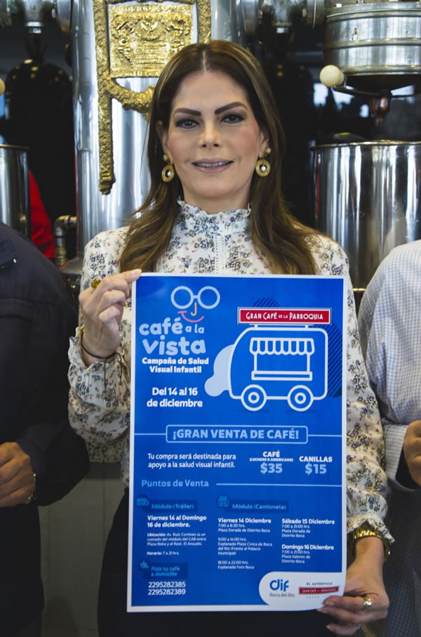 En rueda de prensa explicó que para lograr todo el apoyo se colocaran dos módulos de venta de café, un tráiler y una camioneta, los días 14, 15 y 16 de diciembre que estarán ubicados de manera estratégica en la ciudad para la comercialización de la bebida en precios accesibles, café lechero o americano $35 pesos y canillas $15 pesos; para comodidad se realizarán pedidos a domicilio a los números 22 95 28 23 86 ó 22 95 28 23 89. Dijo que el módulo del tráiler estará de manera fija desde el viernes 14 al domingo 16 de diciembre de las 7:00 a 21:00 horas, ubicado en Av. Ruíz Cortines (a un costado del módulo de CAB, entre Plaza Boka y el Restaurante el Anzuelo); mientras que el módulo itinerante estará el viernes 14 de diciembre de 07:00 a 08:30 horas en Plaza Dorada en Distrito Boca; de 09:00 a 14:00 explanada de la Plaza Cívica de Boca del Río; de 18:00 a 22:00 horas en la Explanada del Foro Boca; el sábado 15 de diciembre de 07:00 a 21:00 horas del Distrito Boca y el Domingo 16 de diciembre de 07:00 a 21.00 horas en Plaza Valores del Distrito Boca. Preciso que los servicios y atención con módulos de venta abarcarán los fraccionamientos y colonias de Costa de Oro, Jardines de Virginia, Jardines de Mocambo, Joyas de Mocambo, Las Américas, Los Pinos, Estatuto Jurídico, Sutsem, Galaxia, Hípico, Costa Verde y la zona hotelera. Karla Robles, señaló que los interesados en este servicio y apoyar a esta causa noble pueden disfrutar de itinerario completo en la red social de Facebook a través de DIF de Boca del Río. Indicó que el municipio boqueño no tiene el dato exacto de la población infantil que requiere anteojos o lentes pero de acuerdo al censo del INEGI 2016 existe una población de 27 mil 988 menores de entre 0 a 14 años, y de acuerdo a porcentajes de la Asociación de Ópticos y Optometristas de México, el 63% de los problemas visuales de los niños de 0 a 15 años se puede corregir con lentes graduados, considerando a la miopía como uno de los problemas más comunes. Finalmente Karla Robles mencionó con lo recaudado se darán lentes graduados para los niños de escasos recursos beneficiados a través de un censo que se realizará en las colonias más vulnerables en coordinación con las Direcciones de Participación Ciudadana y Desarrollo Social para detectar a través de un examen de la vista los menores que requieren lentes graduados.