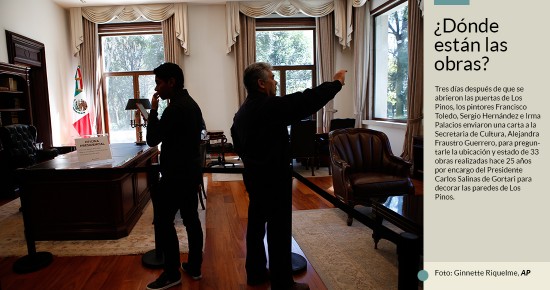 | Las obras de arte que estaban en Los Pinos no se dan por perdidas aún, pero sí “se están ubicando”. | ||||||