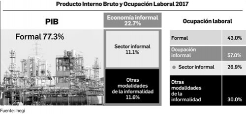 De cada 100 pesos que se generan en el país, 77 salen de trabajos formales. El resto, 23, casi una cuarta parte, de la economía informal. A pesar de ello, más de la mitad de los mexicanos está en actividades no reguladas o trabajos que no tienen prestaciones. Tampoco apoyos económicos ni otros incentivos estipulados en la ley, informó el Inegi. De acuerdo con el reporte Medición de la economía informal, 43 por ciento de personas que trabaja en el país lo hace en un empleo formal, mientras 57 por ciento está en actividades no reguladas. Si bien la economía formal absorbe a la mayor población ocupada, lo hace en empleos de mala calidad, que tampoco se traducen en un gran impacto en la macroeconomía, según los datos de instituto. De 22.7 por ciento de la riqueza del país que genera la economía informal, que equivale a 4 billones 705 mil 381 pesos, 11.1 por ciento corresponde al sector propiamente informal, es decir, a aquellos negocios no registrados de hogares dedicados a la producción de bienes o servicios. El 11.6 por ciento restante corresponde a otras modalidades de la informalidad, como labores que no tienen el amparo del marco legal: seguridad social y prestaciones sociales. En cuanto al sector informal, el comercio continúa siendo la actividad económica con mayor nivel de contribución, con 38.3 por ciento, seguido por la construcción (27.8), la industria manufacturera (13.2), los servicios de transporte, correos, almacenamiento y otros, excepto actividades gubernamentales (5.6, por ciento cada uno), así como servicios de alojamiento y preparación de alimentos y bebidas (4.3), reporta el Inegi. Los sectores con más peso Dentro de otras modalidades de la informalidad, el sector económico con mayor peso en su composición es el agropecuario, que representa 24.5 por ciento. Le siguen el comercio al por mayor (13.7), el sector manufacturero (12.2), el comercio al por menor (9.8) y los servicios de transportes, correos y almacenamiento (5.8), así como otros, excepto actividades gubernamentales (5.7). De acuerdo con Marcelo Delajara, director del programa Crecimiento Económico y Mercado Laboral en el Centro de Estudios Espinosa Yglesias, hay espacio en la economía formal para incluir a gran parte de dicho 57 por ciento. Esas personas ya están trabajando, la informalidad la medimos sobre gente que ya trabaja. Entonces, sí hay empresas suficientes para eso, subrayó en entrevista. Algunos óbices para aumentar el sector formal son las altas cuotas del Instituto Mexicano del Seguro Social en comparación con los salarios. Por otro lado, el bajo nivel de capacitación con que cuentan algunos trabajadores. En este último punto, agregó, es donde el Estado puede abonar. En este contexto, la Secretaría del Trabajo y Previsión Social proyecta aumentar 40 por ciento su presupuesto, de acuerdo con el Proyecto del Presupuesto de Egresos de la Federación. Una razón del incremento es la puesta en marcha del programa Jóvenes Construyendo el Futuro, que dará subsidios de 3 mil 200 pesos al mes a jóvenes, hasta por un año, para que se capaciten en empresas. No obstante, otros programas destinados a vinculación y defensa de empleos formales reflejan mermas. Por un lado, el Programa de Apoyo al Empleo pasó de 975 millones 354 pesos presupuestados en 2018 a 306 millones 146 mil 812 pesos en el ejercicio del próximo año. Por otro lado, el de procuración de justicia laboral pasó de 202 millones 292 mil 759 pesos en 2018 a 26 millones 500 pesos, que se proyectan para 2019. |