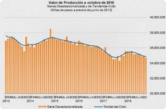 | Durante octubre cayó 0.7 por ciento el valor de la construcción, el personal ocupado disminuyó también 0.5 por ciento, las horas trabajadas lo hicieron también en 0.8 por ciento, de acuerdo a la comparación entre octubre y septiembre de 2018; no obstante, las remuneraciones medias reales mostraron un incremento de 0.2 por ciento. | ||||||
