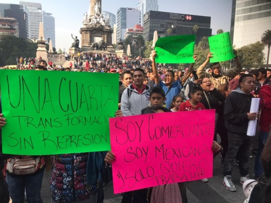 Al grito de “queremos trabajar”, exigieron que se regularice el comercio en la vía pública y afirman que quieren una cuarta transformación sin represión.