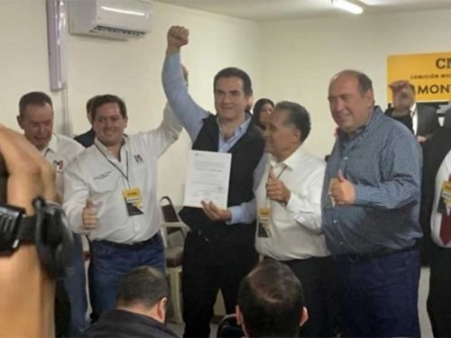 | El priista Adrián de la Garza recibió su constancia de mayoría en la Comisión Municipal Electoral en medio de un fuerte dispositivo de seguridad; ya es alcalde electo de Monterrey | ||||||