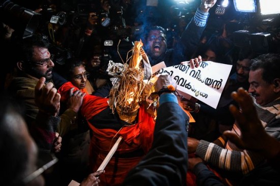 | Éstos estallaron después de que dos mujeres ingresaran a escondidas y bajo protección policial al santuario hindú de Sabarimala, donde las mujeres de entre 10 y 50 años –las consideradas en edad de menstruar– tenían prohibido la entrada. | ||||||