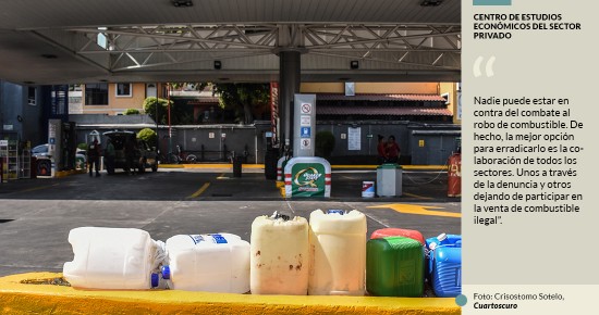 | El Centro de Estudios Económicos del Sector Privado (CEESP) llamó a los consumidores a no participar en la venta de huachicol y a denunciarlo. Aunque celebró el combate contra este delito, alertó que la estrategia de cerrar los ductos fue rebasada por la demanda de combustible de finales de año. | ||||||