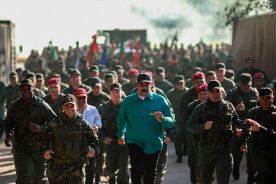 "¡Traidores nunca, leales siempre!", arengó Maduro, tras asegurar que el "golpe de Estado imperialista" busca "imponer un gobierno títere" en la figura del jefe parlamentario opositor, Juan Guaidó, quien el miércoles se autojuramentó presidente interino con el respaldo de Estados Unidos y otros países. "Vamos a dejar a punto y a tono todo el sistema de armas, toda la fuerza militar, todo el apresto operacional, toda la unión cívico militar, toda la capacidad miliciana para que nadie ose siquiera pensar en tocar nuestro suelo sagrado", manifestó el gobernante socialista. Maduro encabezaba ejercicios militares en el estado Carabobo (norte), mientras seguidores de Guaidó repartían en las calles de ciudades de todo el país copias de una ley de amnistía que impulsa la colaboración de militares para cesar lo que la oposición considera la "usurpación" de la presidencia por parte de Maduro. "Tenemos que hacer respetar el poder de la nación venezolana, con el poder militar", siguió el mandatario. Luego, preguntó a los militares: "¿Ustedes son golpistas o ustedes son constitucionalistas? ¿Ustedes son proimperialistas o son antiimperialistas?". El mandatario venezolano detalló que las visitas que realizará a partir de hoy a diferentes destacamentos militares tienen como objetivo la preparación de grandes ejercicios militares entre el 10 y el 15 de febrero. La Fuerza Armada es considerada el principal sostén de Maduro y aunque su cúpula le ha declarado "lealtad absoluta" y unidad, muestra fisuras. El sábado, el agregado de Defensa en Washington, coronel José Luis Silva, desconoció a Maduro e instó a los militares a respaldar a Guaidó, y hace una semana 27 militares fueron detenidos tras sublevarse. |