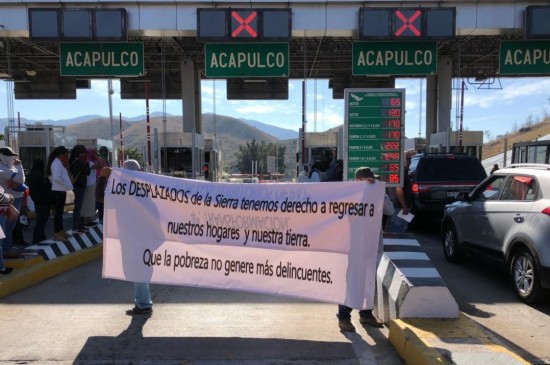 | Habitantes del municipio de Leonardo Bravo que fueron desplazados por la violencia que se vive en la sierra de la entidad, tomaron la caseta de peaje de la autopista del Sol que se ubica en el poblado de Palo Blanco, municipio de Chilpancingo. | ||||||