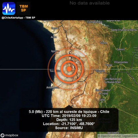 Esta zona ha sido fuertemente afectada por las lluvias de las últimas semanas. El movimiento sísmico ocurrió a las 16.23 hora local (19.23 GMT) y su epicentro se localizó a 62 kilómetros al suroeste de Ollagüe y a unos mil 600 de Santiago, informó el Centro Sismológico de la Universidad de Chile. ![]() Hasta el momento no se han reportado víctimas mortales por estos hechos. El Servicio Hidrográfico y Oceanográfico de la Armada de Chile (SHOA) aseguró que el sismo no reunió las condiciones necesarias para generar un tsunami en las costas del país.