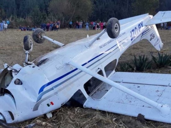 La tarde de este sábado fue cuando la aeronave tipo Cessna de la Escuela de Capacitación Aérea Integral con matrícula XB-OZF quedó volteada en terrenos de la comunicada de Santa María del Monte.