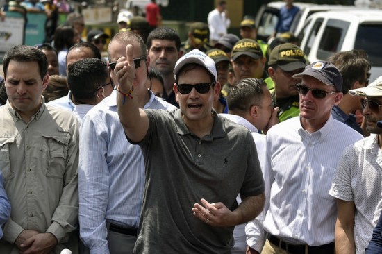 “Es impresionante pararse aquí” y ver “a la distancia un país que está sufriendo, una población que está sufriendo y la cantidad de ayuda que existe de acá, listo y disponible para distribuir”, dijo el senador a la prensa cerca del puente fronterizo Simón Bolívar en territorio colombiano. “¿Qué es lo que está impidiendo?” que entre la ayuda humanitaria, preguntó Rubio. Y acto seguido respondió, dirigiéndose a los venezolanos, dijo que la bloquea “su propio mandatario; y le diré su mandatario ilegitimo, que no tiene legitimidad ni constitucional ni legal”. “Esto no se trata de una crisis política, esta es una crisis humanitaria, de seres humanos que no tienen nada que ver con la política; que se le esta negando la medicina, la comida y la ayuda necesaria para vivir, mientras que esas personas que están en frente de ese régimen están viviendo como multimillonarios, con fondos en todas partes del mundo”, destacó Rubio, acompañado por su correligionario, el representante por Florida Mario Díaz-Balart. Rubio, un crítico acérrimo del gobierno de Maduro, se reunió con legisladores opositores venezolanos y con funcionarios colombianos a cargo de los esfuerzos de almacenar la ayuda humanitaria en la frontera y prepararla para la entrega a las personas que “sufren en Venezuela”. "Muchos nos han dado las gracias, pero realmente nosotros estamos aquí para darle las gracias a ustedes, porque ustedes nos han inspirado a nosotros por su valentía, con su dedicación, por el riesgo que han tomado para demandar... que su propia patria regrese a la democracia y a la libertad", agregó. El jefe de la Asamblea Nacional de Venezuela, Juan Guaidó, solicitó la ayuda para paliar la severa escasez de medicinas y alimentos que azota a los venezolanos, mientras que Maduro niega que exista una situación de emergencia humanitaria en Venezuela. Guaidó se declaró en enero presidente interinos en desafío a Maduro. Rubio comentó que en una conversación telefónica con Guaidó, le reiteró que “el mundo entero” esta con él y que “el único que está aislado es Nicolás Maduro y los criminales que lo rodean, que le han hecho mucho daño a su propio pueblo". "Nosotros estamos aquí para apoyarlos a ustedes", insistió. Rubio informó que el domingo “llegará una gran cantidad de ayuda humanitaria para Venezuela”. En la víspera, tres aviones de la Fuerza Aérea estadounidense arribaron a la ciudad colombiana de Cúcuta, donde funciona uno de los cuatro centros de acopio internacionales que fueron abiertos con el apoyo de Estados Unidos, Colombia, Brasil y otros países. Guaidó ha dicho que el 23 de febrero comenzará a ingresar al país la ayuda humanitaria internacional y se realizarán concentraciones en los principales centros poblados venezolanos para recibirla. Los centros de acopio para ayuda humanitaria funcionan en Cúcuta, un poblado del estado brasileño de Roraima, la isla caribeña de Curazao y Miami. |