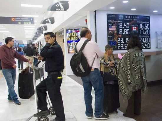El Euro, en tanto, coloca su precio más alto a la venta en 22.79 pesos y el más bajo a la compra de 21.41 pesos en los mismos centros cambiarios de la terminal aérea capitalina.