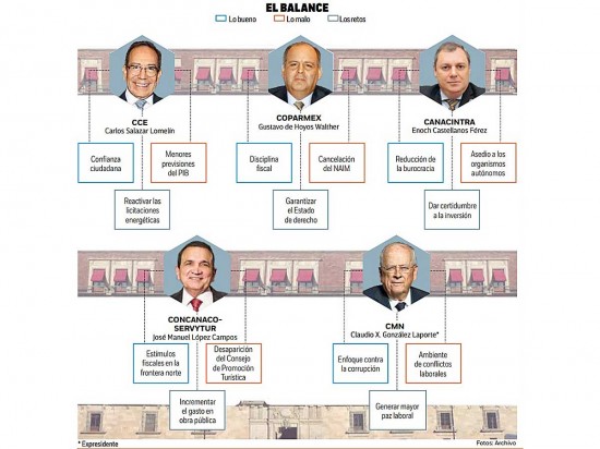 Empresarial, Carlos Salazar Lomelín; de la Confederación Patronal de la República Mexicana, Gustavo de Hoyos Walther; de la Cámara Nacional de la Industria de la Transformación, Enoch Castellanos Férez; de la Confederación de Cámaras Nacionales de Comercio, Servicios y Turismo, José Manuel López Campos y el expresidente del Consejo Mexicano de Negocios, Claudio X. González Laporte.