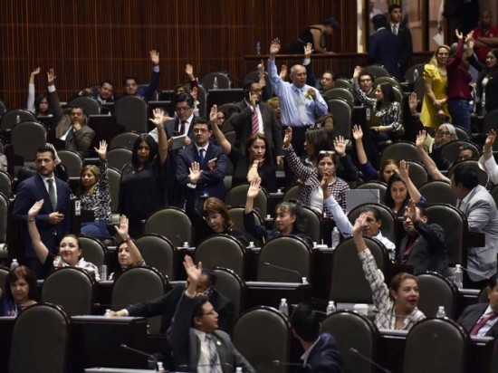 La reforma impulsada por Morena alcanzó la mayoría calificada con la ayuda del PRI, pues tres priistas votaron a favor y ocho se ausentaron; el PAN, PRD y Movimiento Ciudadano en contra. En total, la votación fue de 328 votos a favor, 156 en contra y dos en contra. El reclamo más sonado durante casi siete horas de discusión apuntó que la reforma permitirá al presidente Andrés Manuel López Obrador, si así lo solicita, estar en la boleta justo el día las elecciones de diputados federales de 2021. No queremos un presidente en campaña, queremos un presidente de tiempo completo que respete las elecciones federales de 2021 y que gobierne sin demagogia, sin populismos y para todos… No mentir, no robar, no traicionar. Este es el postulado de Andrés Manuel López Obrador y, sin embargo, hoy, a través del presente dictamen que se discute miente sobre su verdadero propósito, que es cimentar el camino de su perpetuación en el poder. Que la cuarta transformación no sea el postulado para terminar con el sufragio efectivo, no reelección”, dijo el diputado panista Marcos Aguilar. El dictamen señala que la revocación de mandato del presidente de México podrá ser solicitada por él mismo, por el 33% de los legisladores en cualquiera de las dos cámaras, o por el 3% de los ciudadanos en la lista electoral. Hoy puedo decir con orgullo que estamos regresando a la ciudadanía a donde debe encontrarse la democracia, que es el centro. Mediante este dictamen que ponemos a su consideración estamos ampliando los derechos políticos de los mexicanos y no estamos hablando de reelección, como lo quiere hacer creer el PRI y el PAN”, defendió Tatiana Clouthier. El PRD, PAN y PRI señalaron que el dictamen requería de cambios, proponiendo que se empoderara a la ciudadanía organizada de pedir la revocación, que la misma no sea en el día de las elecciones intermedias y que, pero Morena debatió sus argumentos; la diputada de Movimiento Ciudadano, Martha Tagle, apuntó que el interés de los legisladores y todos los futuros candidatos de Morena es que Andrés Manuel haga campaña por ellos. Quieren que el presidente López Obrador esté en la boleta, justamente en las elecciones del 2021 para que voten por ustedes, porque ustedes por sí mismos no llegan a esta Cámara de Diputados, así que no me vengan ustedes a decir que este no tiene un fin político electoral”, dijo. En total se busca reformar ocho artículos de la Constitución, en las modificaciones al 116 y al 122 se quita el candado para que los gobernadores también sean sometidos a este ejercicio, pero sólo si su congreso modifica la Constitución local para tal efecto. Durante la discusión los diputados ilustraron su desacuerdo con pancartas, que frases señalando: “Revocación sí, consulta a modo no”. Yo quiero preguntarles a los compañeros y compañeras de la mayoría ¿cómo vamos a creerles hoy con esta reforma constitucional? ¿Con qué calidad moral pretenden aprobarla si desde antes de asumir el poder y aún después de jurar cumplir y hacer cumplir la Constitución, han realizado consulta a modo, fuera de la ley, vinculantes con decisiones de gobierno, lo mismo para cancelar la construcción de un aeropuerto que para poner un tren en medio de la selva sin estudio de impacto ambiental, ya no digamos de costo-beneficio?”, dijo Ana Lilia Herrera, diputada del PRI.