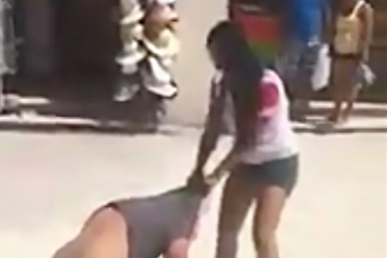 .- En redes sociales se ha difundido un video en el que una mujer jala de la playera a un hombre y lo arrastra por el piso mientras le grita que la traicionó.