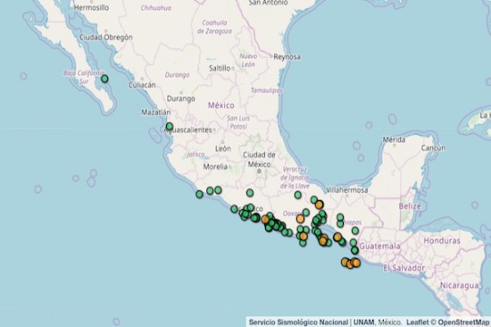 .- El Servicio Sismológico Nacional (SSN) informó que en las últimas 12 horas se han registrado 58 temblores de magnitud entre 2.5 y 4.4 en ocho entidades del país.
