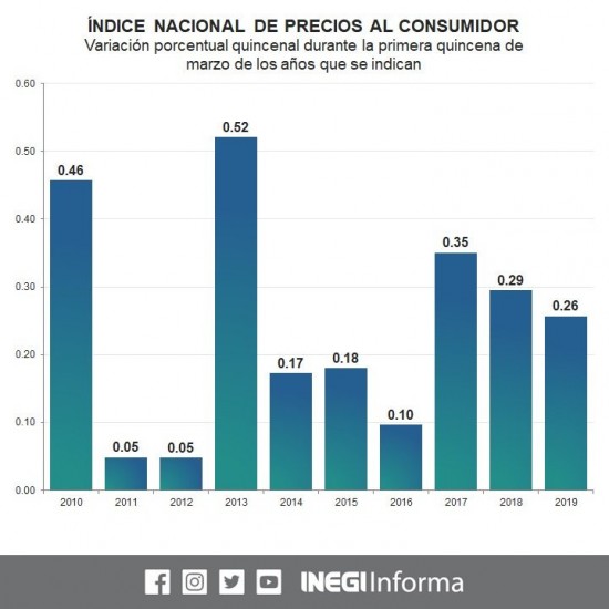 | Inflación llega a 3.95% en primera quincena de marzo: Inegi. | ||||||