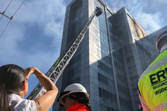 Luego de más de tres horas de labores, elementos del Cuerpo de Bomberos lograron controlar el fuego que había en dicho inmueble, por lo que la jefa de gobierno aplaudió su trabajo y también el que llevó a cabo la Secretaría de Seguridad Ciudadana. Al acudir al sitio del incidente, Sheinbaum comentó que fue saldo blanco, pues no hubo heridos y lograron rescatar a tiempo a tres personas. Señaló que ya se abrió una carpeta de investigación y será la fiscal de Coyoacán quien encabezará las averiguaciones para definir la causa del incendio. La jefa de gobierno supervisó esta mañana los trabajos de los bomberos y después de las 10:00 horas de retiró para continuar con las actividades programadas de jornada de limpieza que se efectúa todos los sábados en diferentes partes de la capital del país. Policías de la Ciudad de México y elementos del Ejército mexicano acordonaron la zona ubicada sobre Insurgentes Sur y Eje 10, a un costado de la Rectoría de Ciudad Universitaria. Los operadores del Centro de Control, Comando, Cómputo, Comunicaciones y Contacto Ciudadano (C-5) de la Ciudad de México alertaron sobre una columna de humo y llamas de fuego, el cual salía de un edificio ubicado en la avenida Insurgentes Sur y Eje 10 Sur, colonia Copilco, por lo que de inmediato se activaron los protocolos de emergencia. El incendio se registró en el piso nueve del edificio de CONAGUA, donde se encontraban dos policías en labores de vigilancia y de inmediato subieron a la azotea junto con una persona del área de mantenimiento hidráulico del edificio, de 56 años, quienes fueron evacuados vía aérea hacia el estacionamiento del estadio de Ciudad Universitaria (CU). El trabajador de mantenimiento y los elementos de la PBI fueron entregados a una ambulancia del Escuadrón de Rescate y Urgencias Médicas (ERUM) para su revisión por inhalación de gases y humo. También llegaron paramédicos de la Cruz Roja y particulares, quienes atendieron a los trabajadores que fueron evacuados con apoyo del personal del Heroico Cuerpo de Bomberos, sin que se registrara algún lesionado. Por su parte, los uniformados de la SSC acordonaron el sitio para permitir las labores de los servicios de emergencia, además de realizar labores de vialidad para evitar el congestionamiento vehicular en las calles aledañas al incendio. |