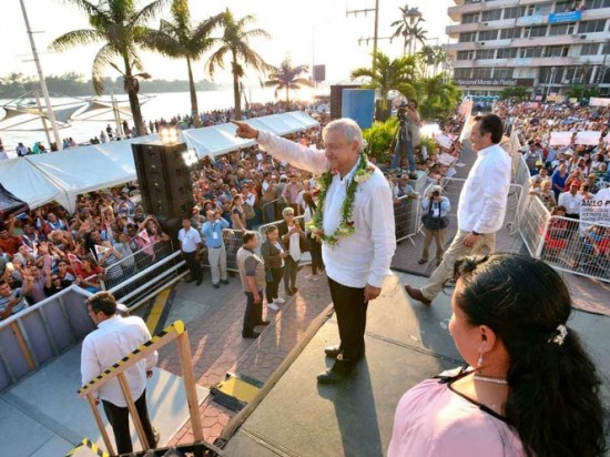 Reiteró que no habrá "gasolinazos", pues no aumentará el costo de la gasolina ni del Diésel en términos reales, e informó que se buscan mecanismos para mantener controlados los precios de los combustibles. Tampoco habrá incremento de impuestos ni contribuciones nuevas, pues "no necesitamos nada de eso" y el presupuesto alcanzará para desarrollar a México. Advirtió que en su gobierno van a fondo, no por "encimita", contra la corrupción, y reiteró que cumplirá con lo prometido, por lo que no quedará a deber nada a los mexicanos ni a los veracruzanos. Señaló que nada ha dañado más a México que la deshonestidad de los gobernantes y ha dado al traste con todo, y es la causa principal de la pobreza, inseguridad y violencia. Por eso vamos a cambiar este régimen de injusticias, de corrupción, de privilegios. Ya lo estamos haciendo, ya empezamos”, subrayó. Recordó que los apoyos de programas se entregarán de manera directa y resolverán el problema que se tiene en algunas comunidades apartadas, que no tienen facilidad para sacar dinero porque no hay sucursales bancarias. Reiteró que, a través de Bansefi, que será Banco del Bienestar, se contará con un "bancote" porque tendrá sucursales en todos lados. López Obrador abundó que impulsarán la economía popular en beneficio de la gente que se busca la vida como puede y que necesita un apoyo. Aseguró que atenderán todos los problemas que se han presentado, lo que tiene que ver con la falta de atención por las actividades petroleras, y “lo que están haciendo empresas que están construyendo gasoductos en esta región y se está afectando a campesinos, a pescadores". En este sentido dijo que Manuel Huerta, el coordinador del Gobierno Federal en la entidad, visitará las comunidades y escuchará las peticiones, las demandas y representará a la autoridad para que esas empresas cumplan sus compromisos. |