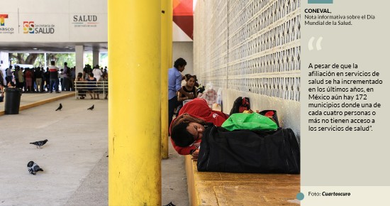 En 172 municipios, de 18 entidades, entre las que destacan Oaxaca, Michoacán, Puebla, Veracruz, Estado de México y Chiapas, una de cada cuatro personas no podía ejercer su derecho a la salud, conforme a la Constitución y la Ley General de Salud, de acuerdo con el Consejo Nacional de Evaluación de la Política de Desarrollo Social (Coneval). Las cifras del Consejo establecieron que las 2.1 millones de personas dispersas en esas entidades no estaban “adscritas a alguna institución de seguridad social o al Sistema Nacional de Salud, o no conocían que contaban con el acceso”. De las personas que no tienen acceso a los servicios de salud, 8 de cada 10 pagaron por consultas, medicamentos, estudios de laboratorio, hospitalización, instrumental médico u otros rubros relacionados con la atención médica. Las consultas y los medicamentos fueron los ámbitos por los que se pagó con más frecuencia, un 94.5 por ciento de la población accedió a estos servicios en médicos privados. Esta condición se repitió aun entre quienes tienen derechohabiencia “ante la percepción de falta de calidad u oportunidad de los servicios públicos”. Pero de acuerdo con Coneval, también hay resultados más positivos, en el lapso de 2010 a 2016 se disminuyó la cantidad de hogares en los que sus integrantes tardarían más de dos horas en llegar a un hospital en caso de una emergencia, de 3.7 a 2.1 horas. De acuerdo con el Consejo, México fue el tercer país de la Organización para la Cooperación y Desarrollo Económicos (OCDE) con menor accesibilidad económica en el ramo de la salud, pues en 2016 destinó 5.8 por ciento del PIB contra el 9 por ciento en promedio que destinaron otros de los países miembros. En tanto, el gasto público en salud también fue menor al promedio de la OCDE, situado en el 6.5 por ciento, localizándose en el 3 por ciento. Sin embargo, el gasto privado fue el segundo más alto de los países miembros, con 41.4 por ciento por erogación directa de la ciudadanía y 6.5 por ciento por aseguramiento privado. Además, frente a otros países miembros, hasta 2016, la esperanza de vida al nacer en México se situó en los 75 años, pasando de los 34 en 1930, de acuerdo con datos del Instituto Nacional de Estadística y Geografía (Inegi), sin embargo, se mantiene entre las más bajas de la OCDE, que se ubicó en los 80 años. Uno de los mayores retos que planteó Coneval será avanzar en la integración de un sistema público de salud con mejores mecanismos de coordinación, pues “a pesar de los avances registrados en los últimos años en garantizar este derecho, es necesario avanzar hacia el acceso oportuno, asequible y con calidad para todas las personas en el país”. En el marco del Día Mundial de la Salud, con el lema “Salud universal: para todos y todas, en todas partes”, el Coneval llamó a avanzar en la integración de un sistema público de salud con mejoras en la coordinación interinstitucional. Así mismo, a mejorar la calidad y la eficiencia del gasto público en esta materia con criterios que garanticen una asignación equitativa y que pueda ser de utilidad para resolver las necesidades de la población. También urgió a aumentar la infraestructura en salud, con prioridad en las comunidades rurales y de difícil acceso geográfico; así como a la generación de mecanismos de formación al personal en relación con las necesidades especificas de las zonas detectadas con insuficiencia de personal calificado. Además instó a la contribución para reducir la incidencia de de la epidemia de obesidad en todos los grupos sociales. |