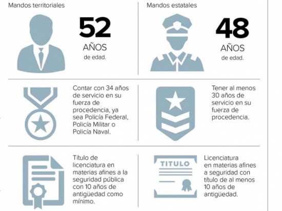 | Al menos 30 años de servicio en sus corporaciones deberán tener los mandos territoriales y estatales | ||||||