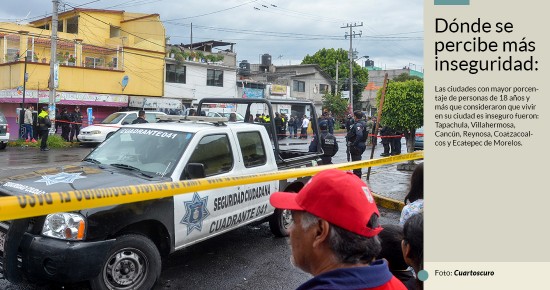 La percepción de inseguridad es más alta para las mexicanas, pues 79.6 por ciento respondió que el ambiente de su localidad es más inseguro frente a los 68.3 puntos reportados por los hombres. El dato de las mexicanas se elevó 1.6 puntos porcentuales frente a la medición anterior en diciembre y descendió en 0.4 puntos porcentuales respecto al año anterior. “La sensación de inseguridad por temor al delito y las expectativas que tiene la población sobre la seguridad pública se generan por la influencia de diversos factores, como la atestiguación de conductas delictivas o antisociales que ocurren en el entorno donde se desenvuelve la población”, citó el informe. Las ciudades percibidas como más inseguras fueron: Tapachula, Chiapas, con 96 por ciento; Villahermosa, Tabasco (95.2); Cancún, Quintana Roo (93.3); Reynosa, Tamaulipas (92.8); Coatzacoalcos, Veracruz (92.6); y Ecatepec de Morelos en Estado de México (92). En contraparte, las ciudades con menor percepción de inseguridad fueron: Saltillo, Coahuila, con 26.4 por ciento; San Pedro Garza García, Nuevo León (34.5); Mérida, Yucatán (38.5); Los Cabos, Baja California (40.8); San Nicolás de los Garza, Nuevo León (41.7); y Durango, Durango (42.9). De las personas encuestadas por Inegi, el 81.7 por ciento dijo sentirse más insegura en cajeros automáticos localizados en vía pública; el 75.1 en el transporte público; el 69.7 en el banco y el 67.1 en las calles que habitualmente usa. CONTINUARÁ IGUAL De acuerdo con la ENSU, el 32.8 por ciento de la población consideró que en los próximos 12 meses la situación de la delincuencia en su ciudad seguirá igual de mal; el 22.2 percibió que la situación empeorará durante el próximo año. Estos datos representaron una variación del -14.1 y 3.2 puntos porcentuales respecto de marzo de 2018 y diciembre de 2018, respectivamente. Durante el primer trimestre de 2019, la población que aseguró haber visto o escuchado de la venta o consumo de drogas en las calles cercanas a su vivienda disminuyó en 2.8 puntos porcentuales frente al primer trimestre del año anterior. “Respecto al primer trimestre de 2018, se presentó un aumento de 2.7 puntos porcentuales en cuanto a la atestiguación de disparos frecuentes; y una disminución de 3 puntos porcentuales en cuanto a consumo de alcohol; de 3.9 en vandalismo; y 2 puntos porcentuales respecto a bandas violentas o pandillerismo”, dijo el Inegi. El 64.2 por ciento de los encuestados dijo haber atestiguado u oido de robos o asaltos en las cercanías de su vivienda; el 62.4 el consumo de alcohol en las calles; el 50.1 de vandalismo en las viviendas o negocios; 42.8 venta o consumo de drogas; 42.7 disparos frecuentes con armas; y 33.9 bandas violentas o pandillerismo. La ENSU precisó que el 66.4 por ciento de la población de 18 años y más dijo que durante el primer trimestre de 2019 modificó sus hábitos respecto a “llevar cosas de valor como joyas, dinero o tarjetas de crédito” por temor a sufrir algún delito. Un 58.2 por ciento reconoció haber cambiado hábitos respecto a “permitir que sus hijos menores salgan de su vivienda”; 55.5 por ciento dijo que cambió rutinas en cuanto a “caminar por los alrededores de su vivienda, pasadas las ocho de la noche”; y 38.3 por ciento cambió rutinas relacionadas con “visitar parientes o amigos”. En comparación al cuarto trimestre 2018, en este rubro se tiene un aumento estadísticamente significativo de 5 puntos porcentuales respecto a cambio de hábitos como llevar cosas de valor, de 3.7 puntos porcentuales respecto a visitar parientes, de 2.3 puntos porcentuales respecto a caminar por los alrededores de su vivienda y de 2 puntos porcentuales respecto a permitir que menores salgan de su vivienda. En cuanto a la percepción del desempeño de las fuerzas de seguridad, la ENSU arrojó que el 86.6 por ciento vio como “muy o algo efectivo” las labores de la Marina para prevenir y combatir la delincuencia; el 84.3 por ciento calificó de igual manera al Ejército; el 70.2 a la Gendarmería Nacional; el 65 por ciento a la Policía Federal. En tanto que sólo el 49.5 por ciento calificó como “muy o algo efectivo” el trabajo de la Policía Estatal; y el 39.1 por ciento el de la Policía Preventiva Municipal. |