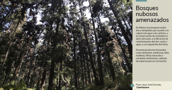 | En México hay bosques nublados y templados que ayudan a la captura de agua y de carbono, a la conservación de la biodiversidad y del suelo, a la filtración de contaminantes del aire, suelo y agua, y a la regulación del clima. | ||||||
