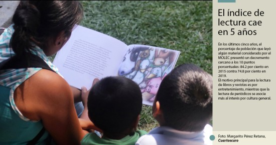 La caída de casi 10 puntos corresponde al sexenio de Enrique Peña Nieto, el Presidente ridiculizado desde que hacía campaña por su ignorancia en la materia. El 3 de diciembre de 2011, al asistir a la Feria Internacional del Libro (FIL), el entonces precandidato del Partido Revolucionario Institucional (PRI) a la Presidencia dijo que el escritor mexicano Enrique Krauze era el autor de La silla del águila, novela escrita en 2003 por el también mexicano y Premio Cervantes de Literatura, Carlos Fuentes. “Leí algo que seguramente en mi vocación por la política alentaba ese espíritu. Fueron varios libros, algunos, La silla del águila, de Krauze”, dijo a la pregunta de cuáles libros habían marcado su vida. La historia, difundida ampliamente en México y en el extranjero, marcaría su sexenio como Presidente. Sería ampliamente ridiculizado. TENDENCIA A LA BAJA DE LECTURA De acuerdo con el Módulo sobre Lectura (Molec) de 2019, difundido en el Día Internacional del Libro por el Inegi, tres de cada cuatro mexicanos alfabetas (el 74.8 por ciento) declararon haber leído libros, revistas, periódicos, historietas o páginas de Internet, foros o blogs. Los datos más recientes del Molec detallan que en promedio, los libros leídos por la población mayor a 18 años fue de 3.3 obras. La temática más concurrida fue la literatura en 42.5 por ciento, seguido de los libros de texto o de uso universitario (34.1); en tanto que los que corresponden a temas de autoayuda, superación personal o religiosos fue de 26.6 por ciento. En lo que va del año, por cada 100 habitantes de 18 años y más, alfabetas y que consumen productos de lectura, 42 dijeron haber leído al menos un libro, cuando esta proporción fue de 50 por cada 100 en 2015. Este 2019, el 67.7 por ciento de esta población dijo leer materiales distintos a libros como revistas, periódicos, historietas o páginas de Internet foros o blogs. De las personas encuestadas, el 19.7 por ciento indicó haber asistido a una librería; el 14.9 por ciento visitó un puesto de libros o revistas usados y sólo el 11 por ciento asistió a una biblioteca. El 59.1 por ciento declaró haber tenido libros que no fueran los de texto en casa; la mitad dijo haber visto a sus padres leer, y el 33.5 por ciento recordó que sus padres o tutores les leían. El Molec abundó también en que las personas con al menos un grado de educación superior declararon haber leído algún material, aunque no necesariamente libros. En promedio, los hombres leyeron más que las mujeres durante los últimos 12 meses, con el 78.1 por ciento, frente al 71.1 de ellas. El material más leído por los mexicanos fue el periódico y las mexicanas consumieron más libros y revistas. En cuanto a la comprensión lectora, tres cuartas partes de la población lectora dijo entender todo o casi todo el material; en tanto que el 21.3 por ciento confirmó sólo comprender la mitad o poco del contenido. El Molec se sustenta en la Metodología Común para Explorar y Medir el Comportamiento Lector del Centro Regional para el Fomento del Libro en América Latina y el Caribe (CERLALC) y la UNESCO. ¿LOS JOVENES DEL MUNDO LEEN? Los estudiantes de 15 años de Singapur fueron los mejor calificados para comprender, utilizar, reflexionar e interesarse por la lectura, ya sea en la escuela o fuera de ella. Mientras, los mexicanos se colocaron en el número 55 de los 70 países miembros de la Organización para la Cooperación y el Desarrollo Económico (OCDE). Seguido de el país asiático, en el Programa para la Evaluación Internacional de Estudiantes (PISA, por sus siglas inglés) los jóvenes estudiantes de Canadá y Hong Kong-China fueron los que puntuaron los lugares 2 y 3. En el marco del Día Mundial del Libro, los datos de la prueba PISA, en materia de lectura, mostraron que el desempeño promedio de los países miembros de la OCDE fue de 493 puntos, en 2015. Singapur obtuvo la media más alta, con 535 puntos; Hong Kong-China y Canadá puntuaron 527; Finlandia (526) e Irlanda (521). Esto es, que los estudiantes de estos países sacaron 4 en la gráfica de calificación de la Organización, que ubica 7 niveles de calificación (1b, 1a, 2, 3, 4, 5 y 6). Los jóvenes de los cinco países mejor puntuados fueron capaces de: localizar y organizar diferentes fragmentos de información no evidentes en un texto; interpretar el significado de los matices en un texto; comprender y emplear clasificaciones; elaborar hipótesis o evaluar críticamente un texto. En cambio, los estudiantes mexicanos de 15 años se localizaron en la media de desempeño en competencia lectora de 423 puntos, una puntuación similar a Colombia (425), y Costa Rica (427), pero debajo de Chile (459) y Uruguay (437), cuyas medias son significativamente superiores. El país latinoamericano mejor puntuado fue Argentina, con una calificación de 475 promedio, sin embargo no superó el nivel 2 de la OCDE, que implica que los estudiantes pusieron reconocer la idea principal en un texto, la relación con sus partes y construir un significado de una parte limitada del mismo. Rayándo el nivel 2 se colocó Brasil, con 407 en promedio; pero Perú (398) y República Dominicana (358) se colocaron muy por debajo de la media de la OCDE y en el nivel 1a de comprensión. BRECHAS ENTRE ESTUDIANTES Singapur resaltó por tener la mayor proporción de estudiantes, el 46 por ciento, con calificaciones en los niveles más altos de la escala (4 a 6). Al país asiático lo siguió Canadá con 41 por ciento de la población. En ambas naciones la proporción de estudiantes en los niveles 1b y debajo de este es casi nula. La última proporción fue similar en Polonia y la Federación Rusa, sin embargo, México se volvió a colocar por debajo del promedio de la OCDE, que se ubicó en el 29 por ciento de los estudiantes, pues solo el 5 por ciento de los jóvenes mexicanos tuvieron un puntaje similar a los niveles más altos de la Organización. El 54 po