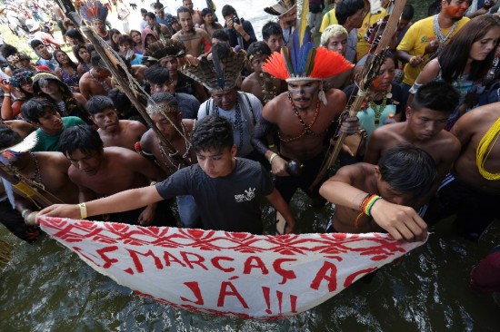 Colorida, como desde que empezó a celebrarse hace 15 años, esta nueva edición del Campamento Tierra Libre, que reunió desde el miércoles a nativos de las cinco regiones de Brasil, se celebró en un contexto de mayor tensión por las políticas aplicadas y anunciadas desde que el exmilitar de 64 años subió al poder en enero. Pero tanto la marcha de este viernes como las actividades de los días precedentes se desarrollaron sin incidentes, a pesar de la seguridad reforzada en la capital por órdenes del Ejecutivo. Armados con arcos y fechas y ataviados con coloridas plumas, collares y grandes tatuajes, los nativos, que representan cerca del 0,4% de los 209 millones de brasileños, desfilaron por la Explanada de los Ministerios, la gran avenida que desemboca en la Plaza de los Tres Poderes. Con cánticos, danzas tradicionales y consignas, reivindicaron el derecho a la tierra y a la educación, protestaron contra la municipalización de la salud y contra los planes de Bolsonaro de flexibilizar los controles para la explotación económica de la Amazonía y sus amenazas a las demarcaciones indígenas. "Los hacendados están volviendo, diciendo que tienen ese derecho ahora, y el juez con la entrada del nuevo gobierno les dice que tienen que quedarse. Así ellos están deforestando mucha selva", explicó a la AFP de José Roberto, cacique de la aldea Sao José, en el estado Maranhao (nordeste). Terminaron la protesta con un baño en las aguas del estanque y las cascadas artificiales del ministerio de Justicia, donde fueron recibidos por un asesor del ministro Sergio Moro. Ahí concentraron sus reproches en la ordenanza de Bolsonaro que despoja a la Fundación Nacional del Indio (Funai) de sus atribuciones de demarcar tierras indígenas y otorgar licencias ambientales, para atribuírselas al ministerio de Agricultura dirigido por Tereza Cristina da Costa, exlíder de la bancada del agronegocio en la Cámara. "Protestamos por el fortalecimiento de la salud indígena y para que el ministro Sergio Moro devuelva a la Funai al ministerio de Justicia. No podemos permitir que la Funai esté bajo el mando de los ruralistas", declaró Dinamam Tuxá, coordinador de la Articulación de Pueblos Indígenas de Brasil (APIB), responsable del evento. Según cifras oficiales, unos 800.000 indígenas de 305 etnias viven en Brasil. La Constitución determina que esos pueblos tienen el derecho al usufructo exclusivo sobre las tierras que ocupan, pero la demarcación se ve amenazada por la tala ilegal, la expansión de la ganadería y el avance de la frontera agrícola. Poco después de su elección, Bolsonaro alegó: "¿Por qué mantener a los indígenas aislados en reservas, como los animales en un zoológico?", si "como nosotros quieren evolucionar, quieren tener médicos, dentistas, acceso a internet, viajar en avión". |